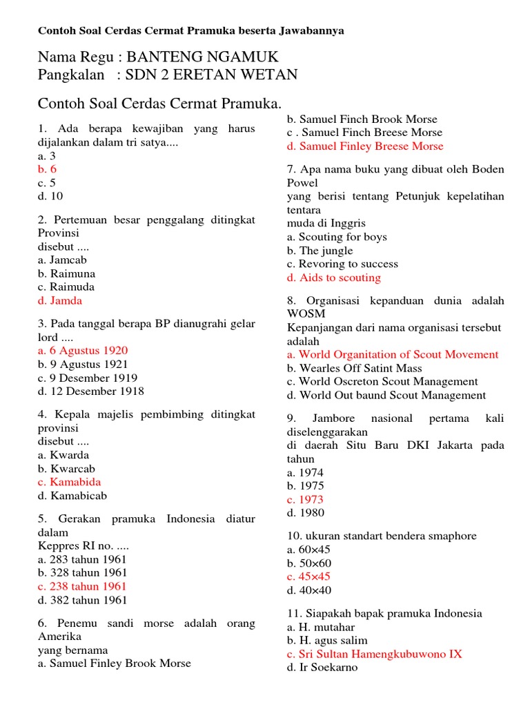 Contoh soal sandi kotak 2. Pada kesempatan kali ini akan admin bagikan kembali contoh soal soal kepramukaan. Jan 14 2017 kumpulan soal pramuka penggalang dan siaga beserta jawabannya. Contoh latihan soal kepramukaan dan kunci jawabannya rtf. Saat ini kita akan mempelajari tentang sandi kotak.